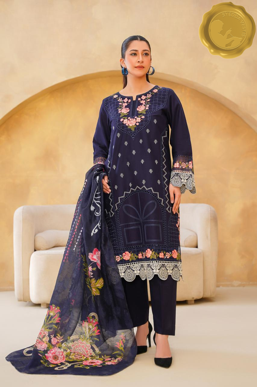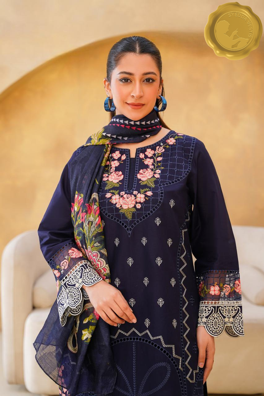 Celebrate Eid in timeless elegance with Syedda Vestis’ stitched 3 piece lawn ensemble.