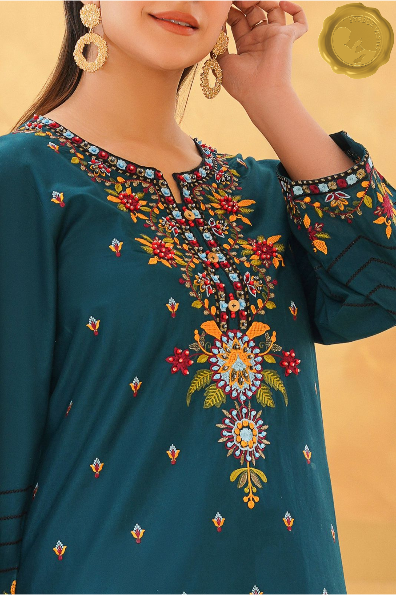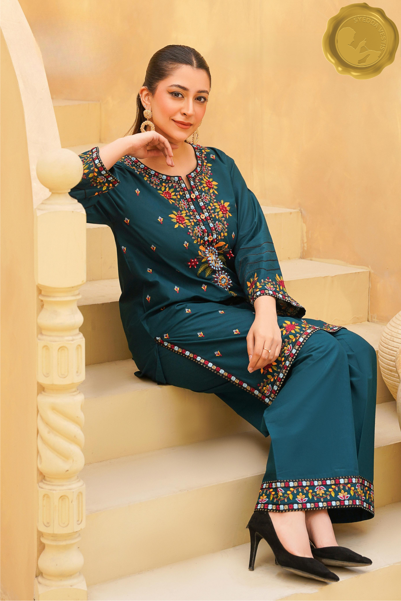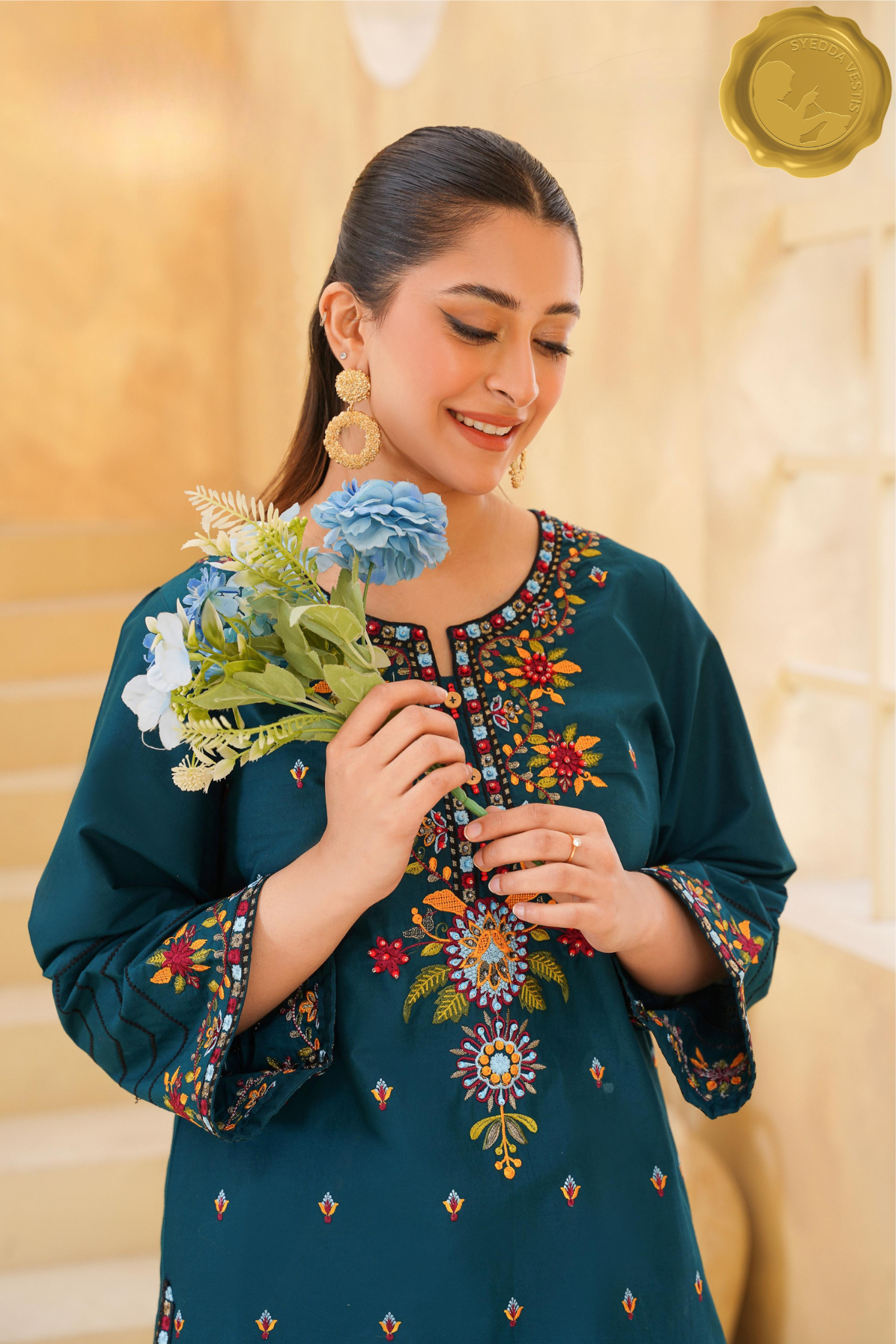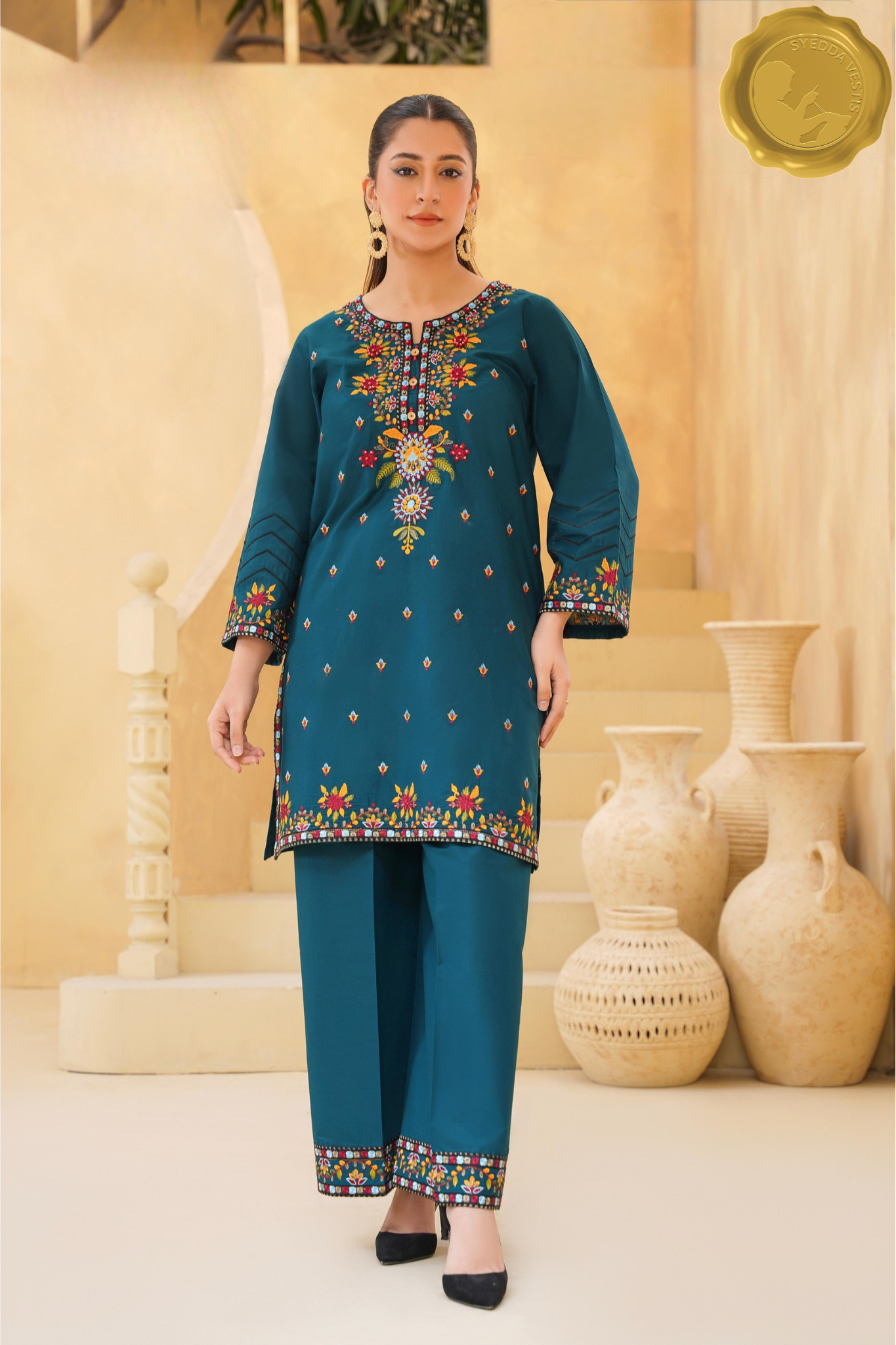 Elevate your Eid look with this stitched 2 piece lawn embroidered outfit in elegant zinc.