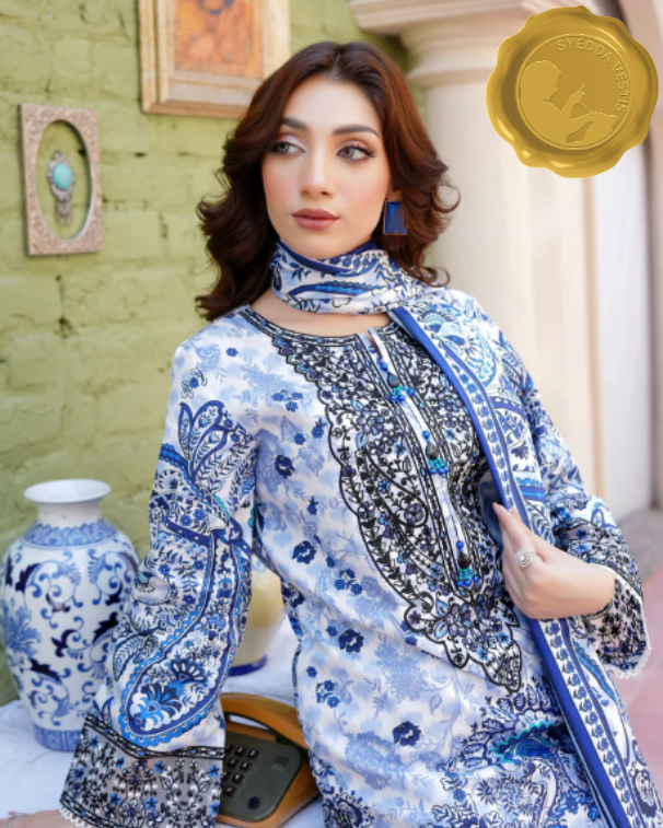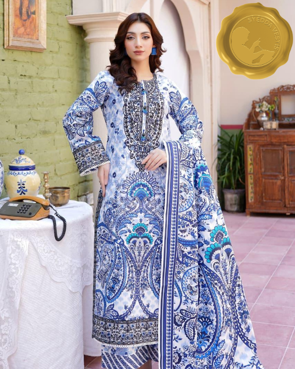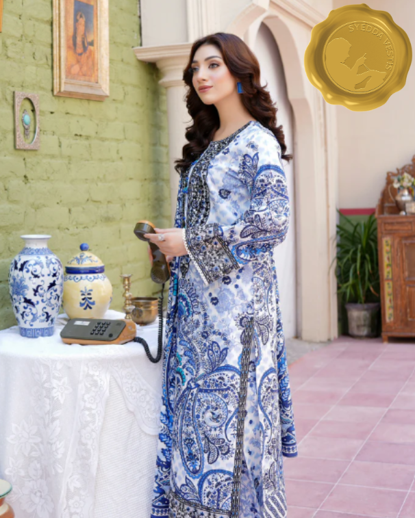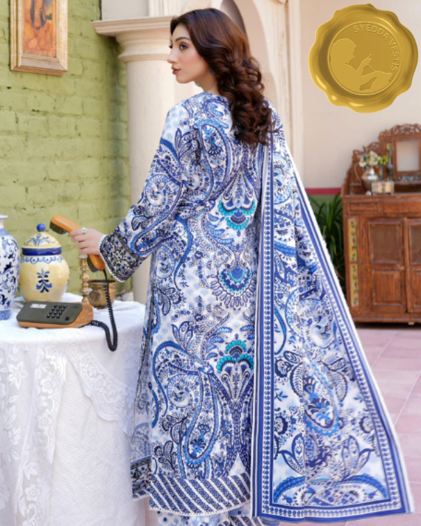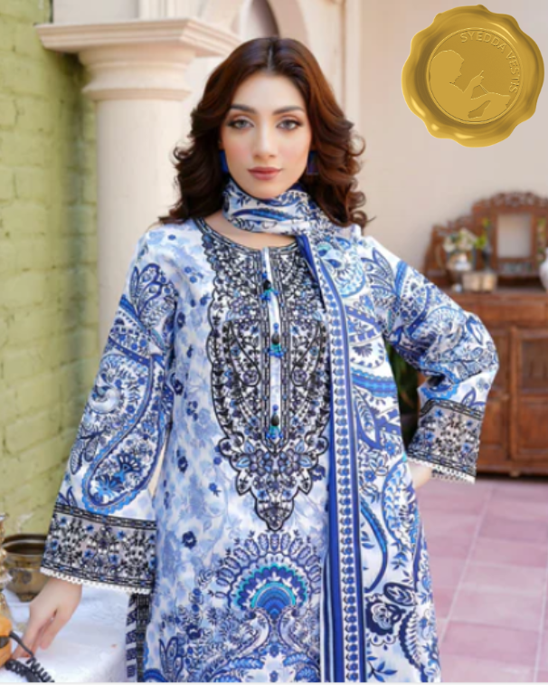- 🧣 Shawl: Printed shawl in matching Khaddar fabric, offering a soft drape and a coordinated finish.
