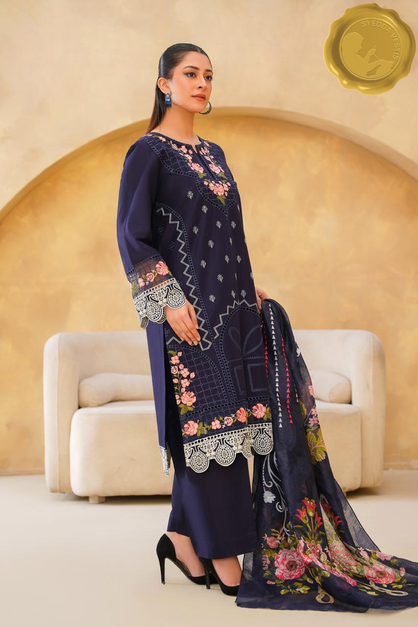 Celebrate Eid in timeless elegance with Syedda Vestis’ stitched 3 piece lawn ensemble.